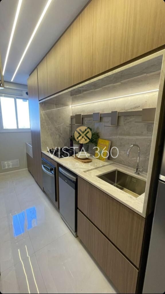 São 67,23 m², com 2 dormitórios, sendo 1 suíte, sala com 2 ambientes, varanda com uma vista incrível, cozinha, lavanderia, banheiro e vaga de garagem.