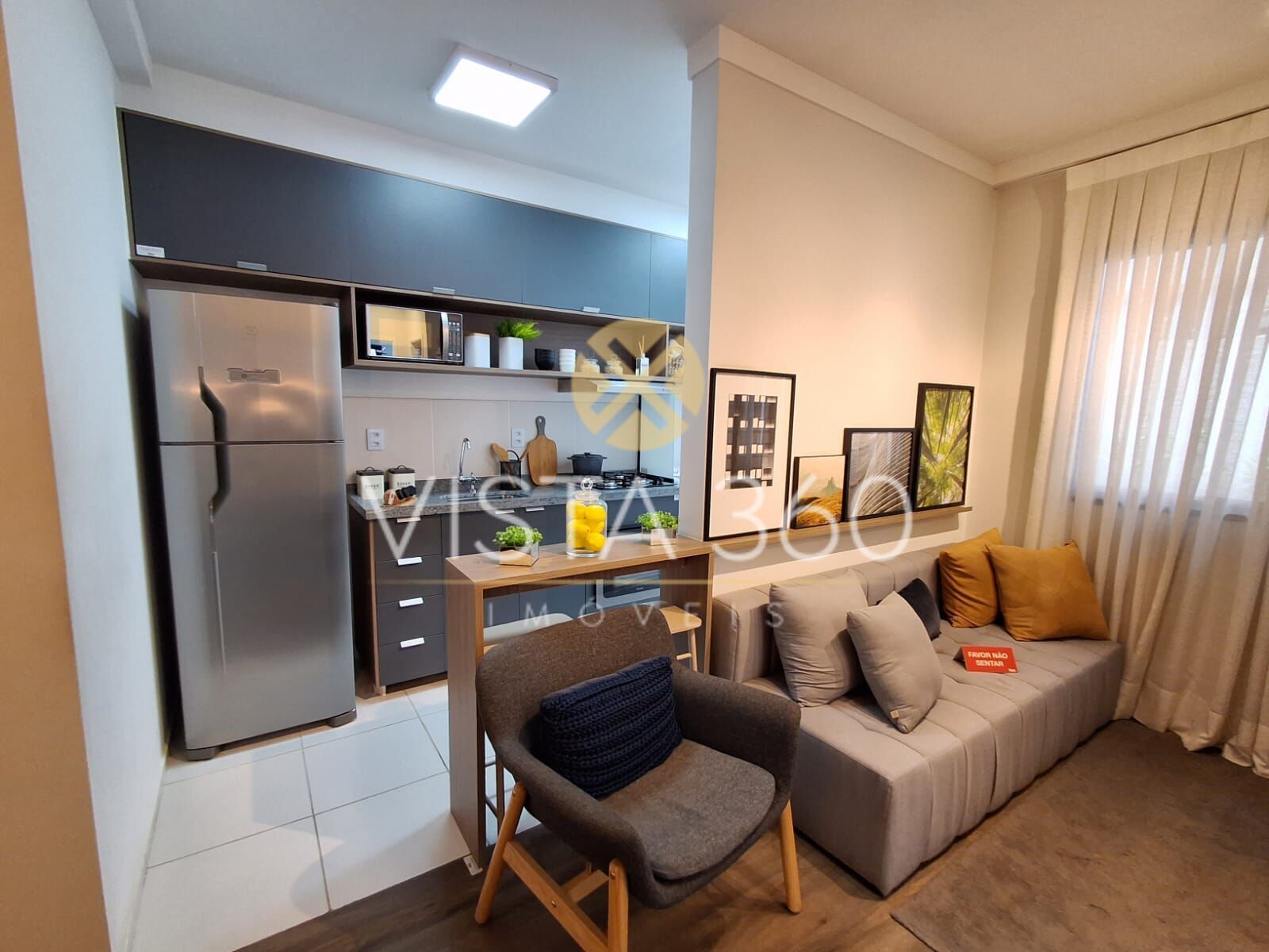 Apartamentos de 43m², 2 dormitórios, varanda e 1 vaga de garagem.