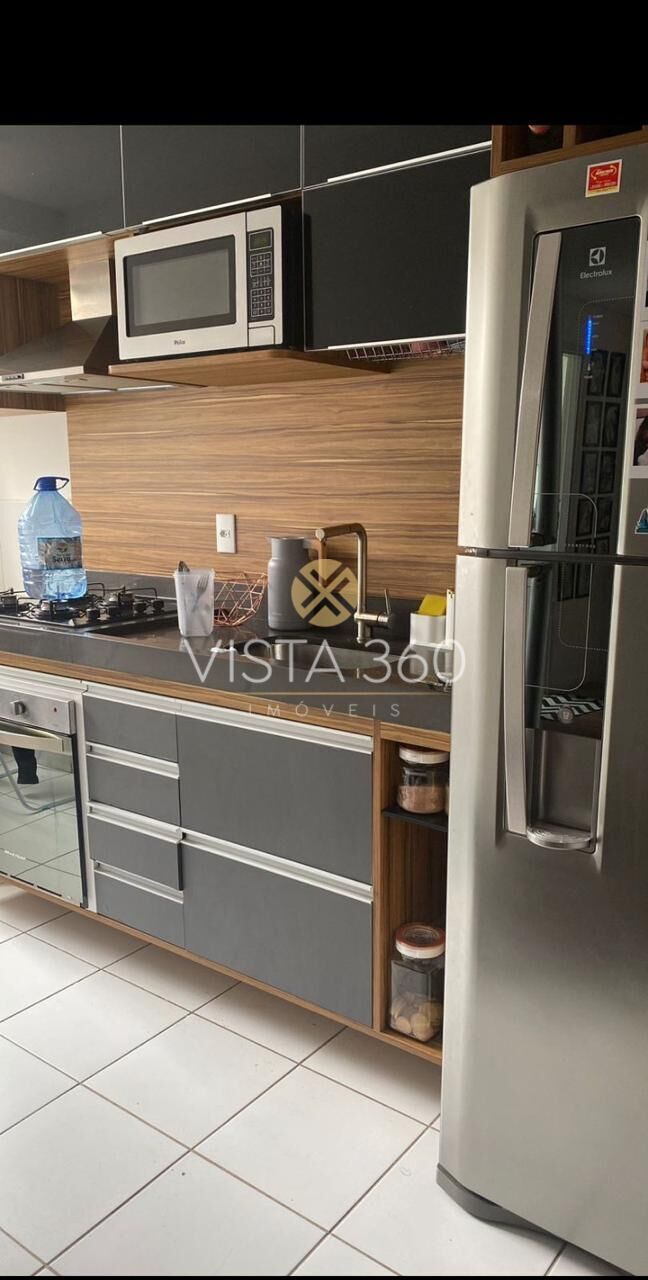 A cozinha se destaca pela bancada em mármore Cinza Prime, equipada com cooktop de indução e coifa premium Brastemp. A sala dispõe de painel para TV, oferecendo praticidade e elegância ao ambiente.