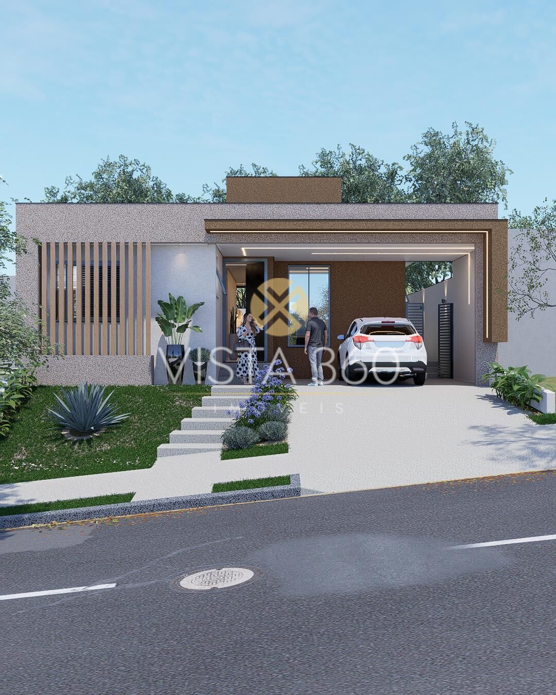 Oferece ainda escritório, quarto de despejo, despensa, banheiro externo, lavanderia, amplo quintal e uma área social totalmente integrada com cozinha, churrasqueira, sala de jantar, sala de tv e com uma área para café, bar e vinhos.