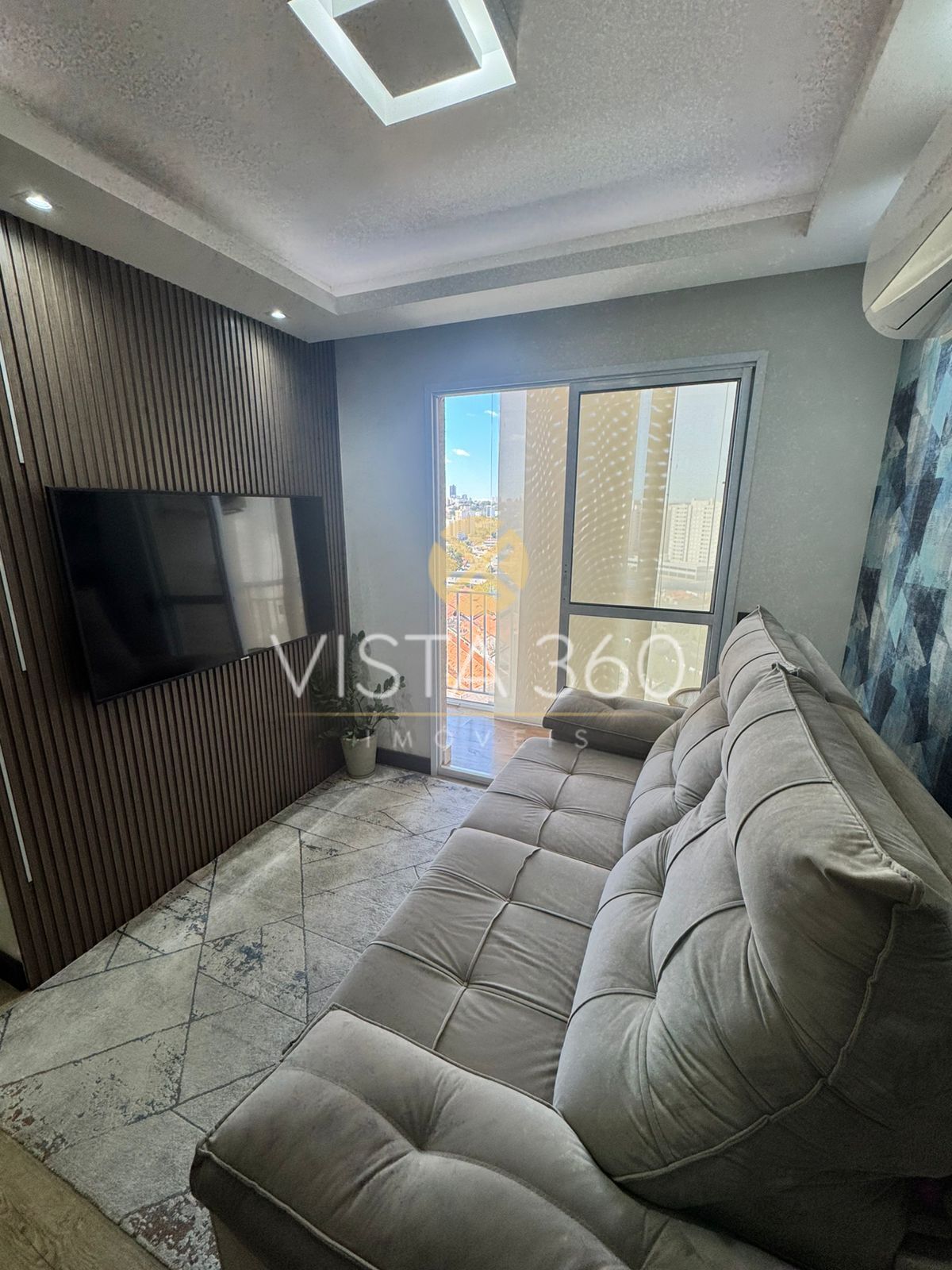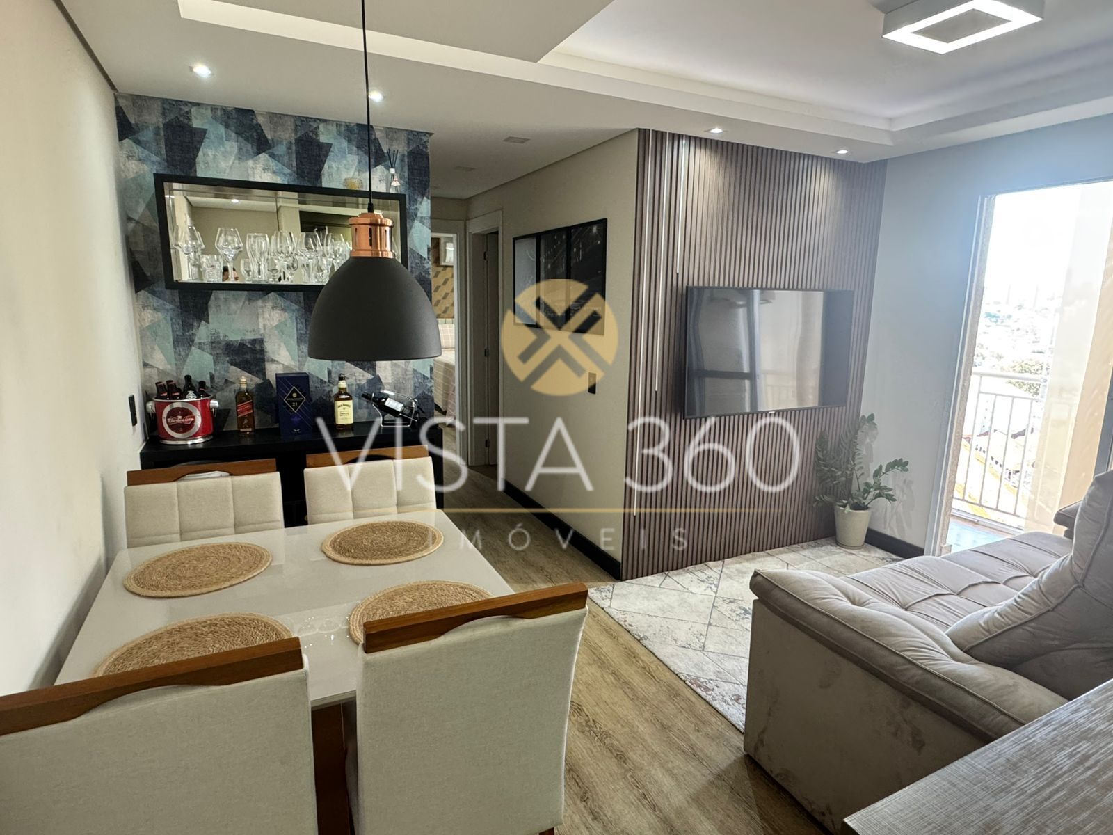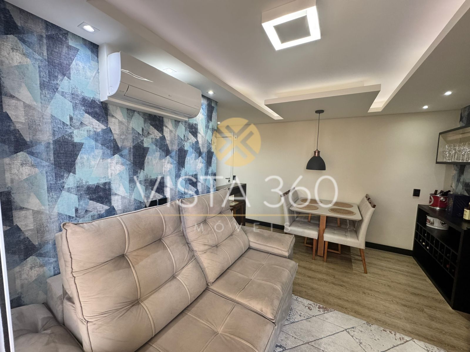 O imóvel possui 2 dormitórios, sendo 1 suíte, além de banheiro social. Conta com ar-condicionado na sala e no quarto, teto rebaixado em gesso com sanca, piso vinílico e sacada com blinds e cortina rolô, garantindo conforto térmico e sofisticação.