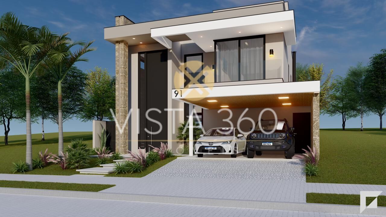 Conta com 3 suítes sendo uma master com closet, a possibilidade de mais uma suíte reversível no térreo. Possui 5 banheiros, lavabo, espaço gourmet, escritório, sala de estar e jantar e 4 vagas de garagem, sendo 2 cobertas.