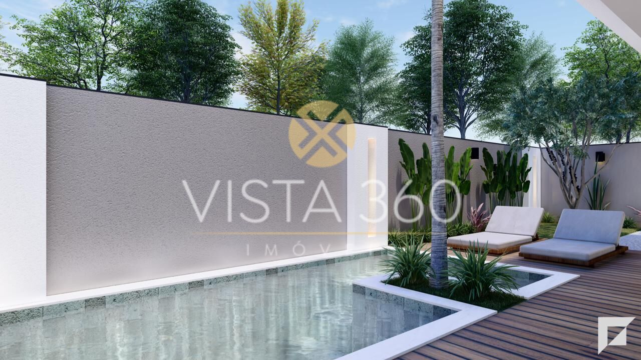 A casa ainda oferece uma bela piscina e solarium integrada ao gourmet para desfrutar de momentos agradáveis.