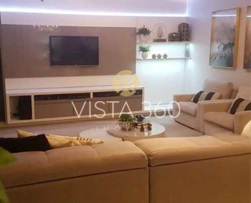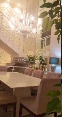 Salas de estar e jantar integradas, pé direito duplo, vidraça proporciona entrada de luz natural, uma decoração clean e sofisticada, cada detalhe, desde os lustres exuberantes até os móveis e eletrônicos, foi cuidadosamente escolhido para criar um ambiente de luxo e conforto.